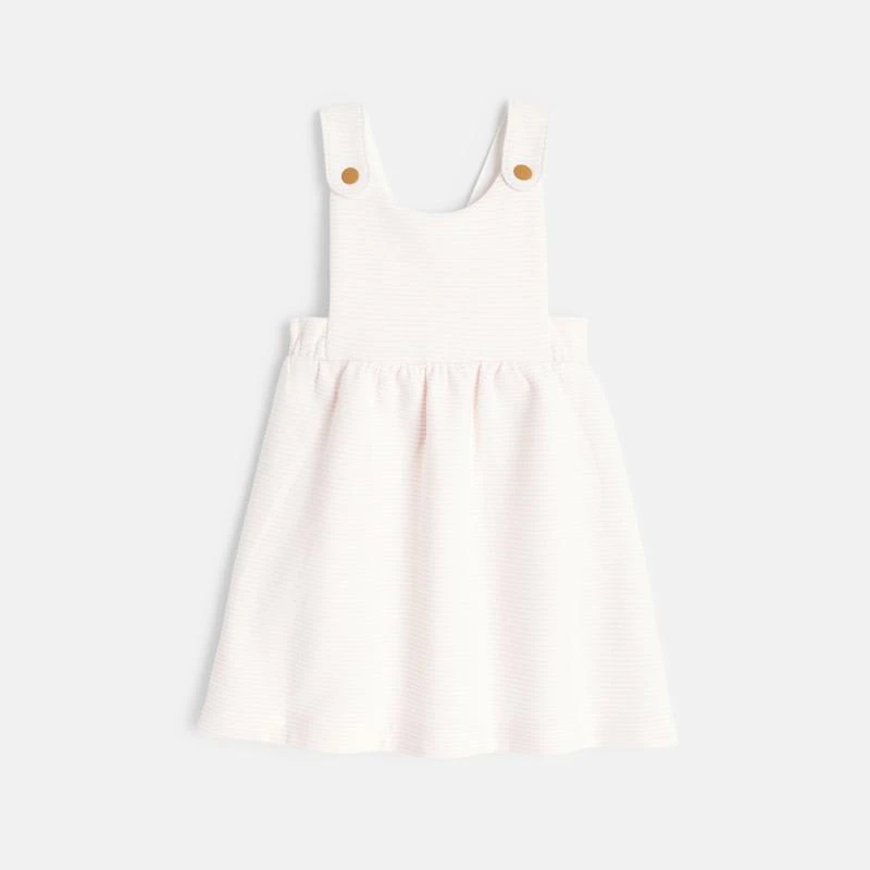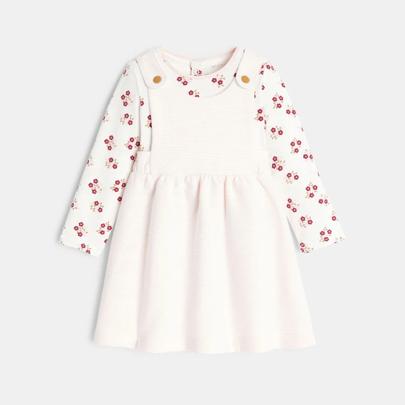 On aime le jeu de matières et le camaïeu de couleurs de cet ensemble très doux. En coton fantaisie effet rayé, la robe à bretelles entoure les petites de confort avec sa taille élastiquée et ses bretelles pressionnées. D’une belle ampleur, elle assure une liberté de mouvements. Le body fleuri manches longues apporte une touche romantique à la tenue. Pressions dos et entrejambe.
