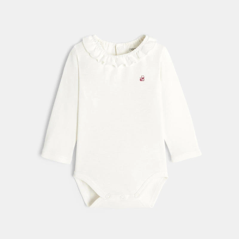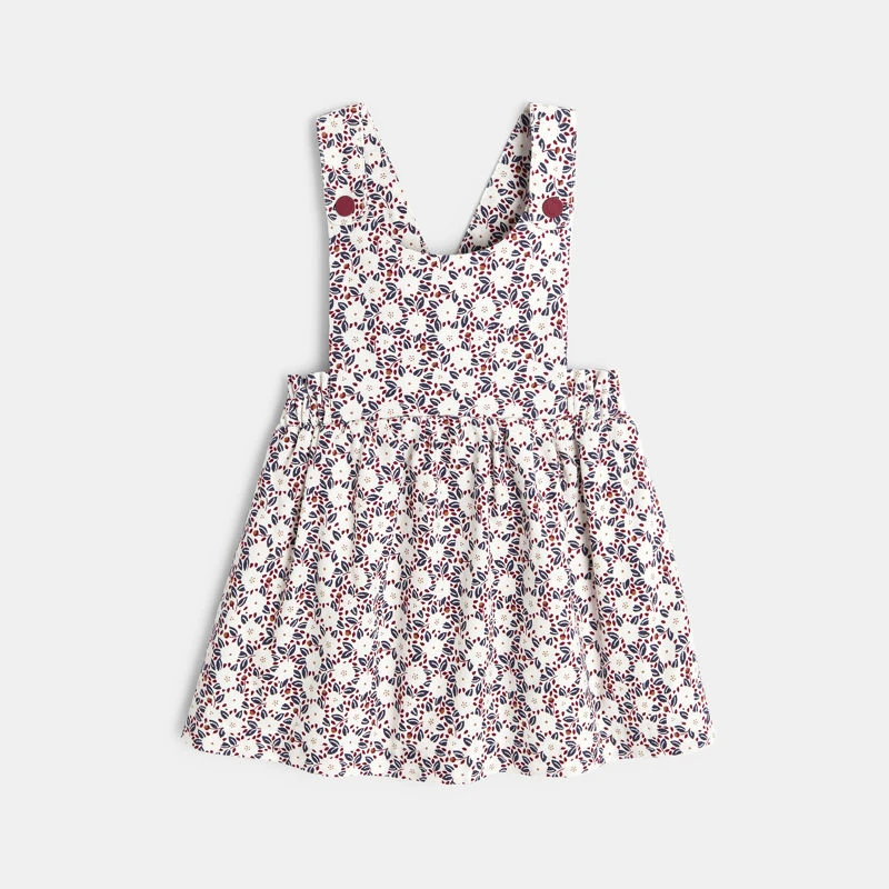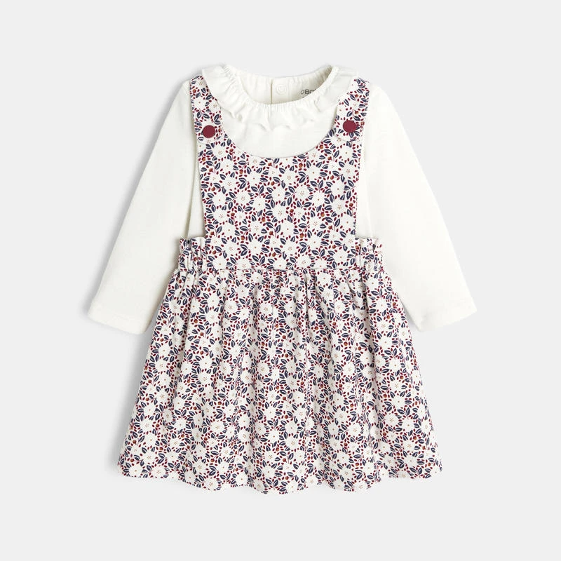 Les romantiques aiment le motif fleuri de cette robe à bretelles en velours doublé. Taille élastiquée et bretelles à pressions pour un confort maximum et un habillage facile. Pour créer une tenue, le body manches longues à col volanté complète cet ensemble. Pressions dos et à l’entrejambe.