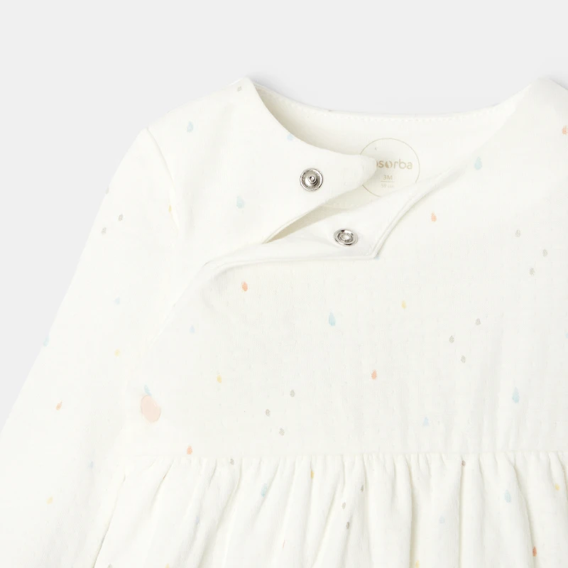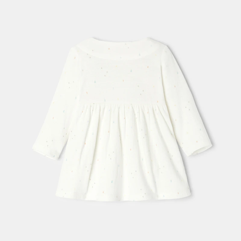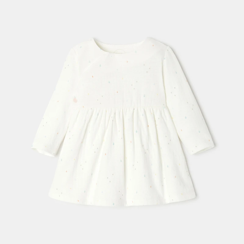 Cette robe à manches en coton bio apporte douceur et confort à votre bébé tout au long de la journée. Pratique, son système d’ouverture avec pressions par le devant permet de le changer sans devoir le déshabiller entièrement. Avec sa matière légère, sa coupe classique et ses motifs doux et pastels, cette robe fait partie des essentiels du vestiaire de bébé.