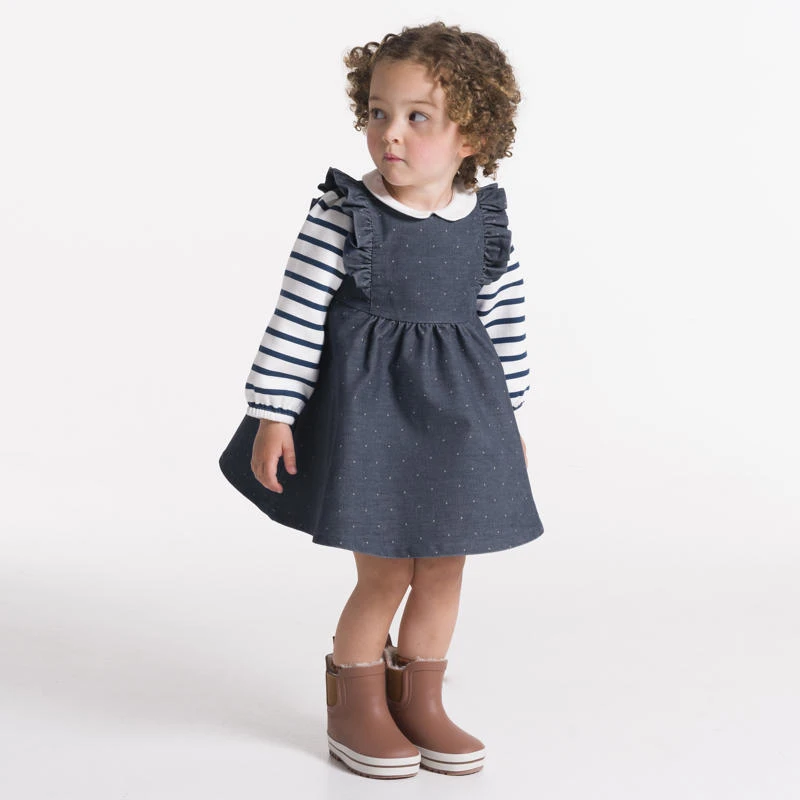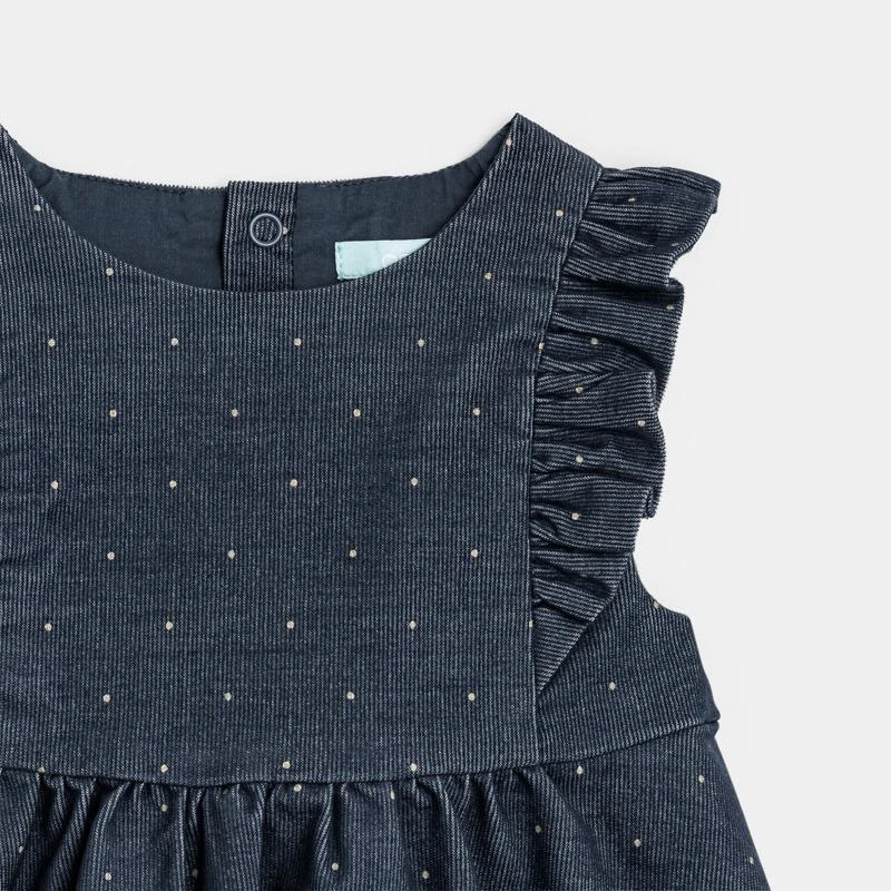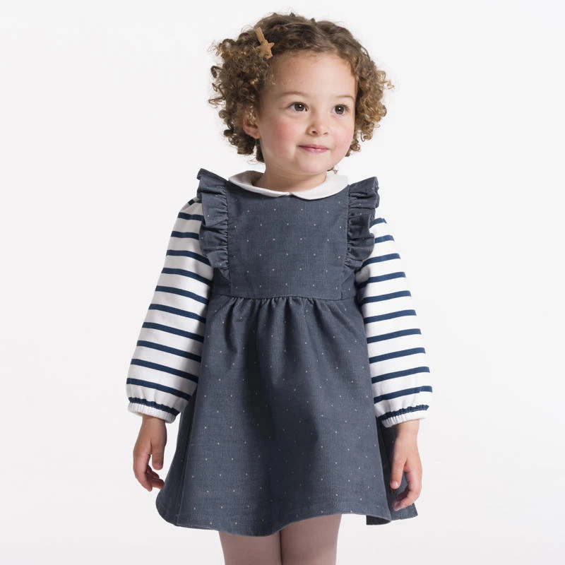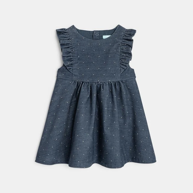 Une fine côte de velours douce et souple agrémentée d’une constellation de pois : les petites adorent cette robe manches courtes volantées en toute occasion ! Avec sa belle amplitude, elle tourne pour le plaisir des filles. Fermeture par trois pressions dos.