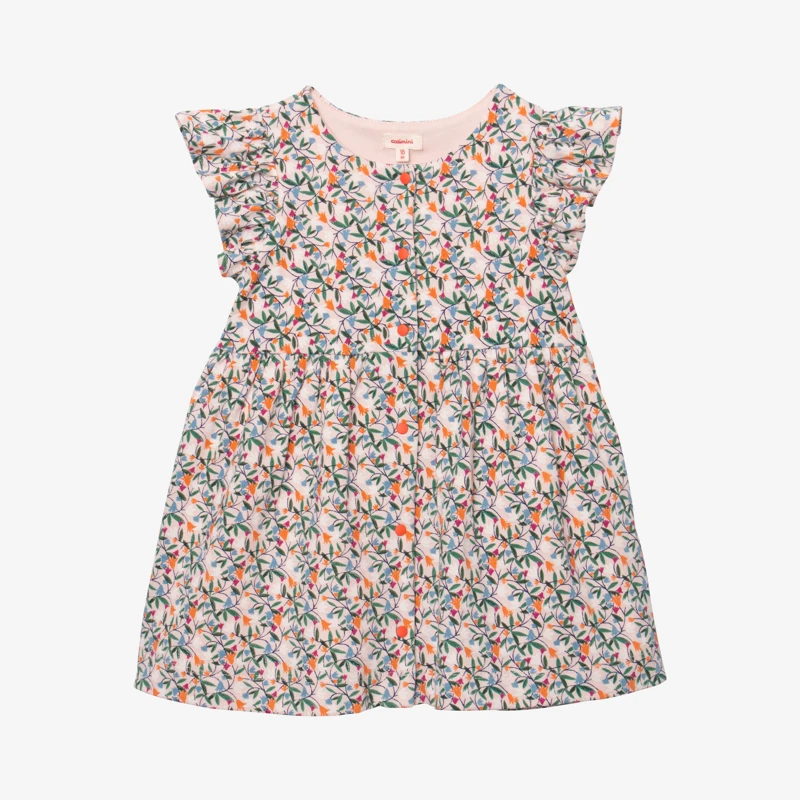 Une petite fille en fleurs, et c’est le pur bonheur ! Cette robe rose poudré, animée d’un imprimé printanier, est un beau cadeau à (leur) faire.