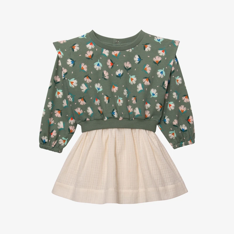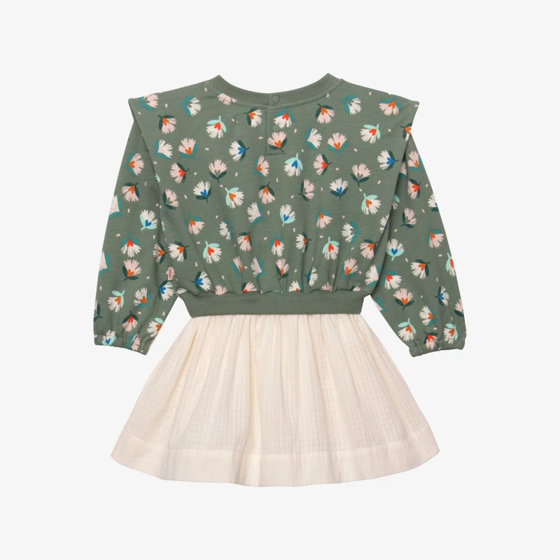 Sweat sur jupe ? Cette robe pour bébé fille maîtrise le trompe-l’oeil à la perfection. Une pièce idéale pour habiller les bébés, en alliant confort et style.