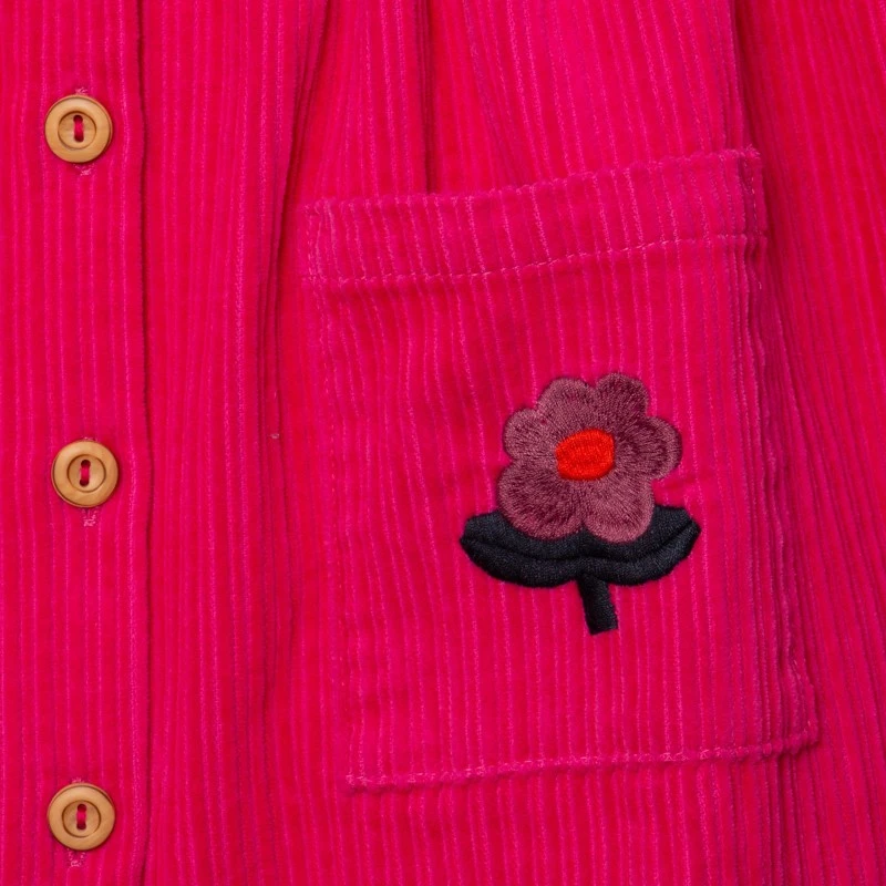 Cette couleur rose vif est un cadeau. Et ce velours côtelé, un bonheur à porter. Bref, c’est la robe parfaite, qui lui fallait !