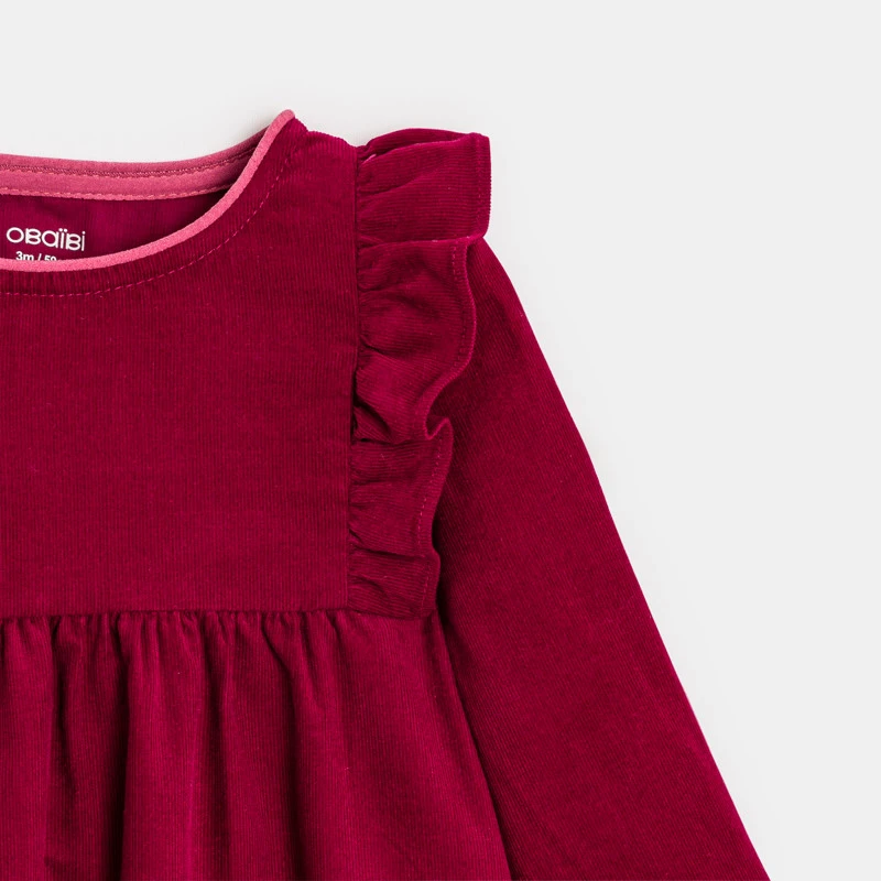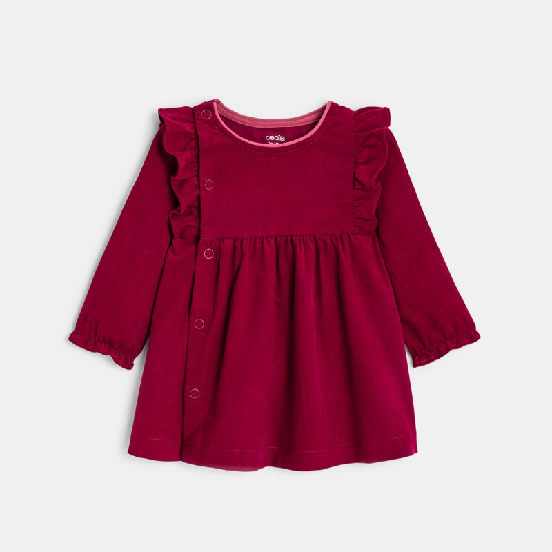 Confectionnée dans un velours finement côtelé, souple et confortable, cette robe d’une belle ampleur assure des journées actives pour les petites. Pour un habillage facile sur le dos, elle est pressionnée sur le devant. Manches longues élastiquées et volants sur les épaules pour les coquettes.