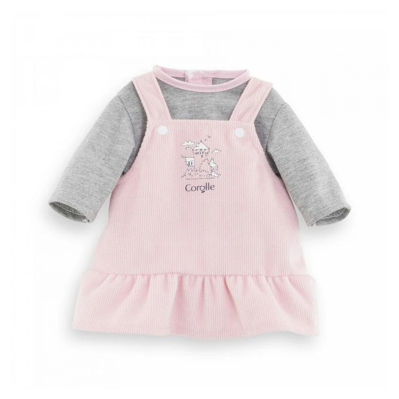 Intemporelle; la Robe Bords de Loire de couleur grise et rose ira à ravir aux grands poupons de 36cm.