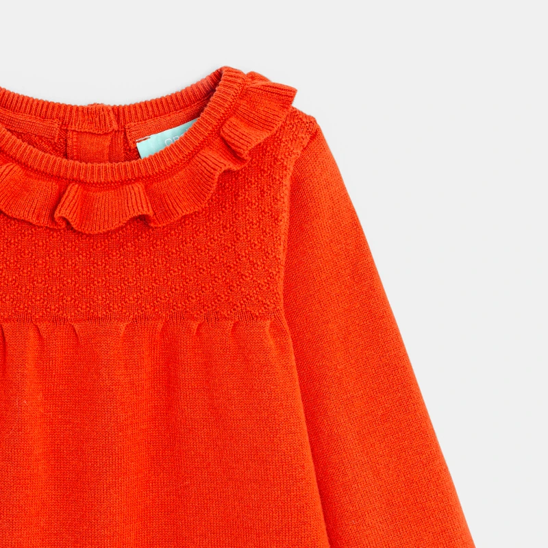Un coloris gourmand pour une touche peps dans le dressing des filles. Cette robe en tricot est chaude et confortable. Sa maille souple égayée par une encolure volantée et boutonnée au dos plaît à toutes les petites.