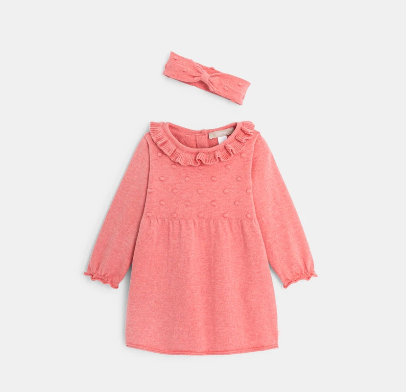 Avec ses détails qui plaisent aux filles, la robe en maille tricot est la star du dressing cette saison. Chaude et tout confort, elle assure une belle liberté de mouvements aux petites. On adore les détails reliefés de sa maille et son col à volants. Fermeture par boutons dos. Le bandeau assorti crée l’ensemble pour une tenue au coloris gourmand.