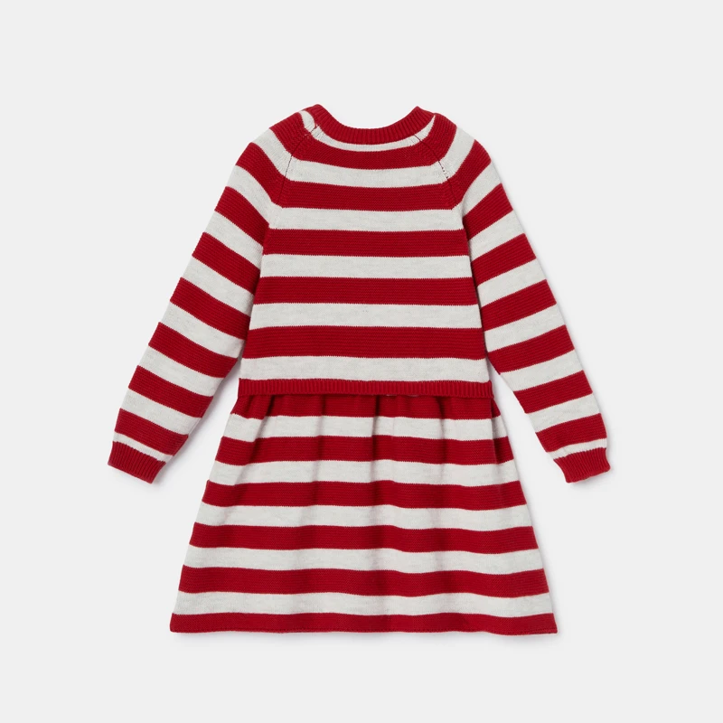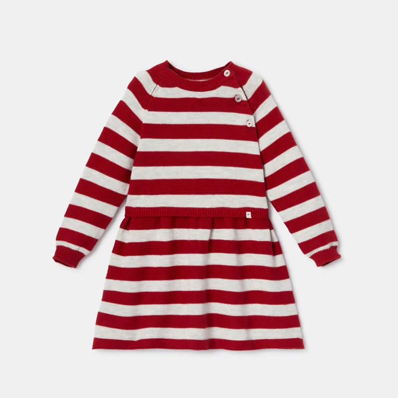 Écrin de douceur : cette robe-pull en maille douce fait le bonheur de votre bébé. Le tricot est souple, confortable, agréable à porter. La coupe évasée la laisse libre de ses mouvements. Coup de coeur sur les rayures en relief réalisées par une alternance de points mousse et de points de jersey.