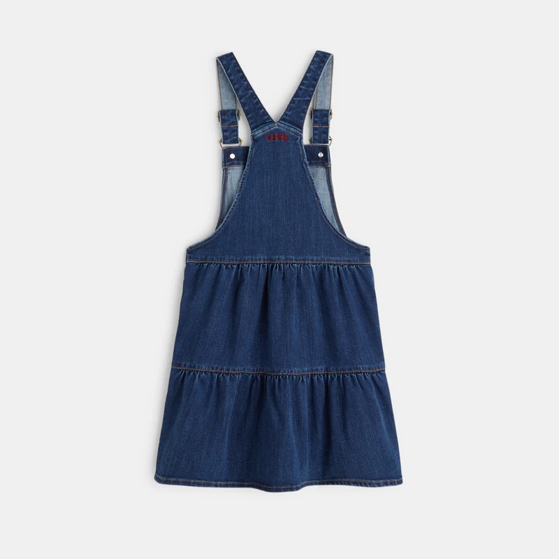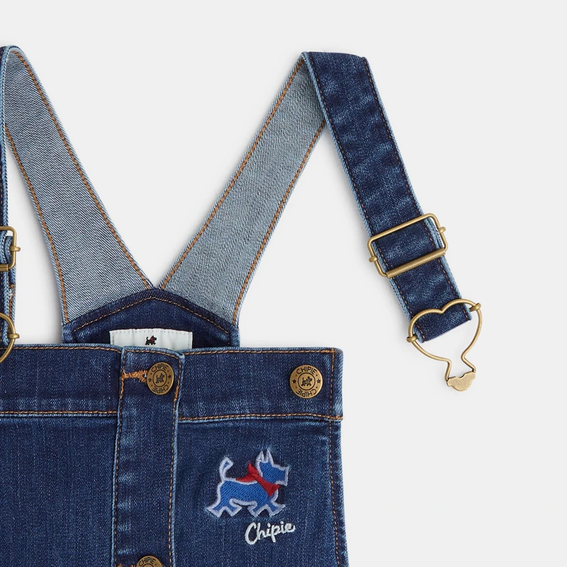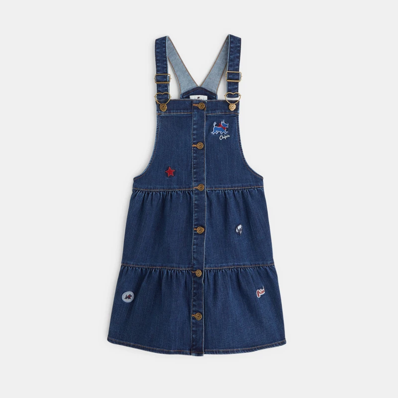 Avec ses bretelles aux boucles laiton en forme de coeur, ses boutons marqués, ses badges en broderie aux messages complices sur l’avant et l’arrière, la robe salopette en jean, c’est LA pièce en denim de la rentrée pour les Chipies. Contient 20% de polyester recyclé. Waterless process
