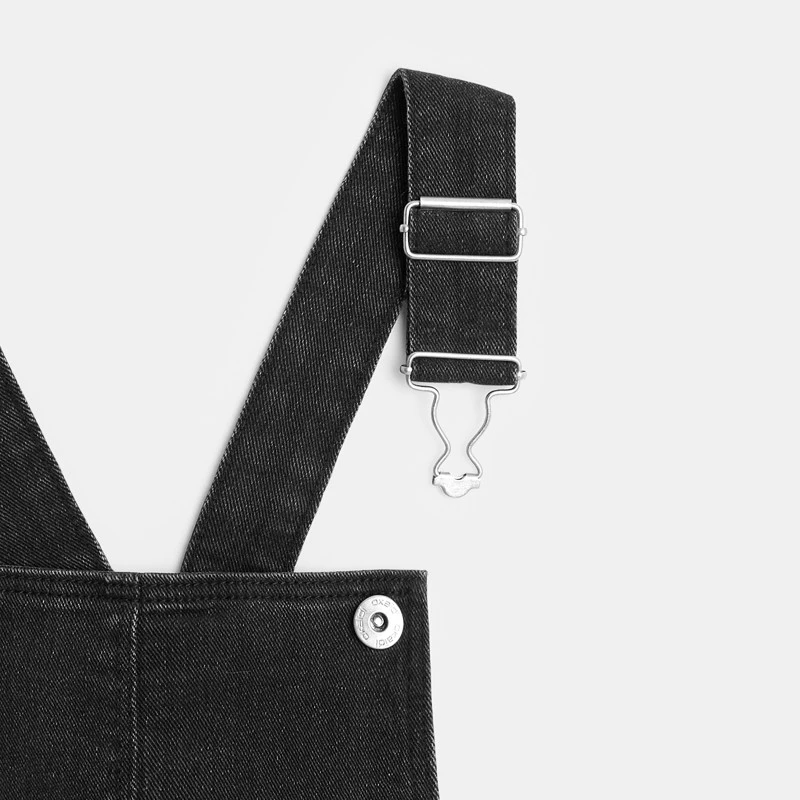 En denim noir, cette robe-salopette est prête : à donner le bon look et à traverser les saisons ! Elle se porte toute l’année. Coupe légèrement évasée. Bretelles ajustables, attaches métal. 4 poches. Base droite. Coutures ton sur ton.
