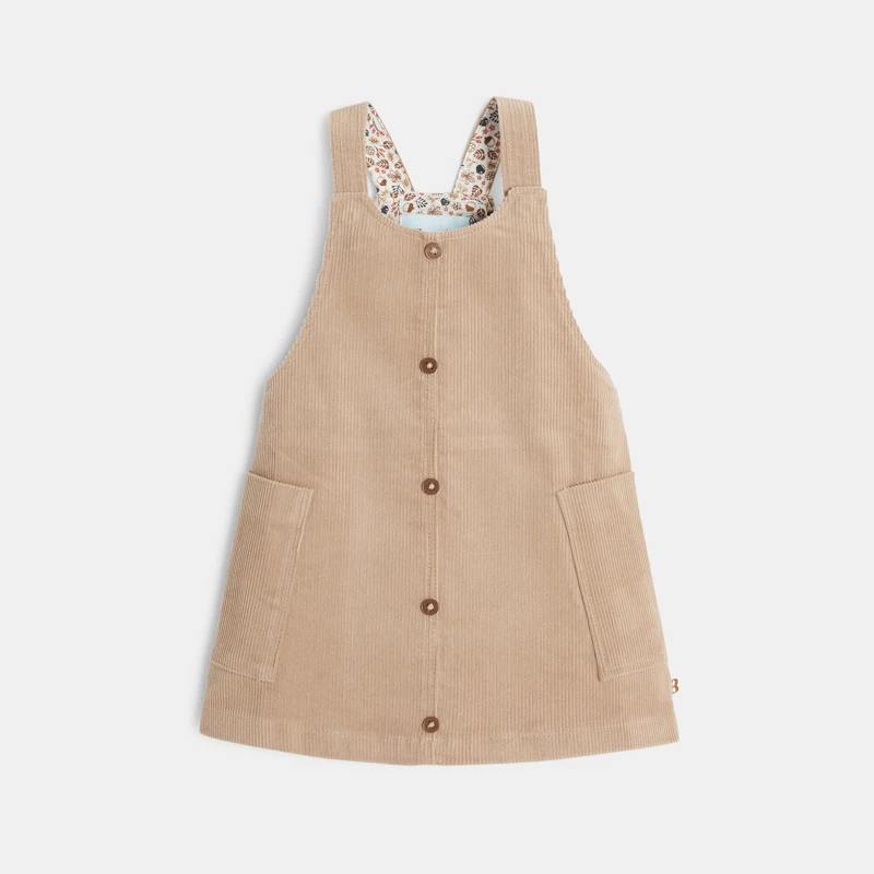 Un petit air authentique dans la garde-robe des filles avec cette robe à bretelles en velours côtelé. Sa forme légèrement trapèze assure une belle liberté de mouvements. Pour un habillage facile, ses bretelles sont ajustables par pressions.