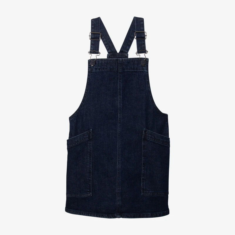 Eté comme hiver, elle défend sa place de pièce iconique. La robe-salopette en jean bleu se superpose aux T-shirts et sweats de la saison.