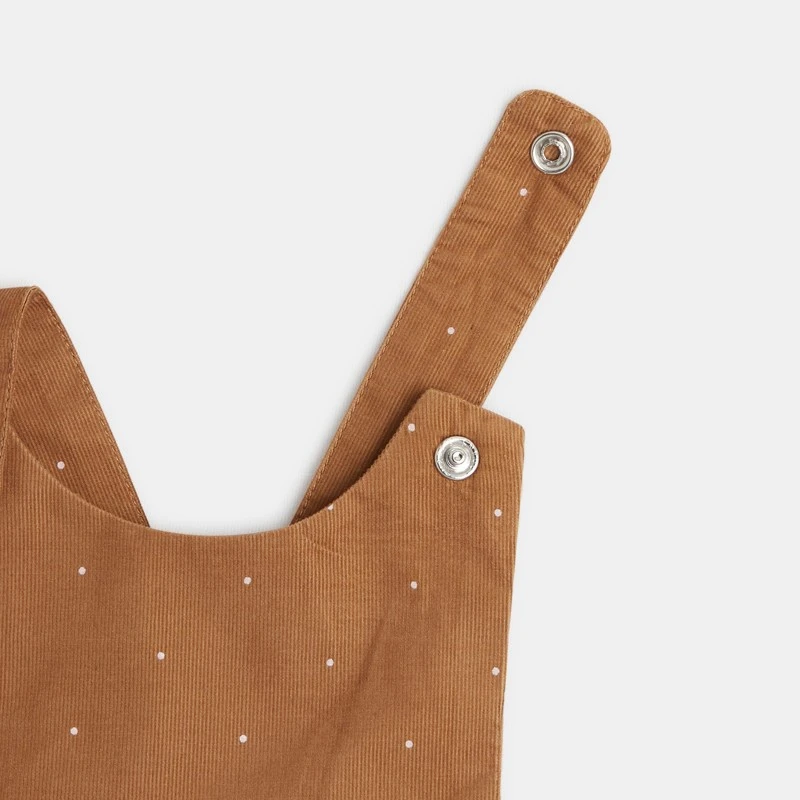 Un ensemble chic pour bouger en toute liberté. Robe en velours fines rayures print micro pois avec doublure. Bretelles pressionnées et taille élastiquée. Pressionné devant et à l’entrejambe pour un habillage facile.